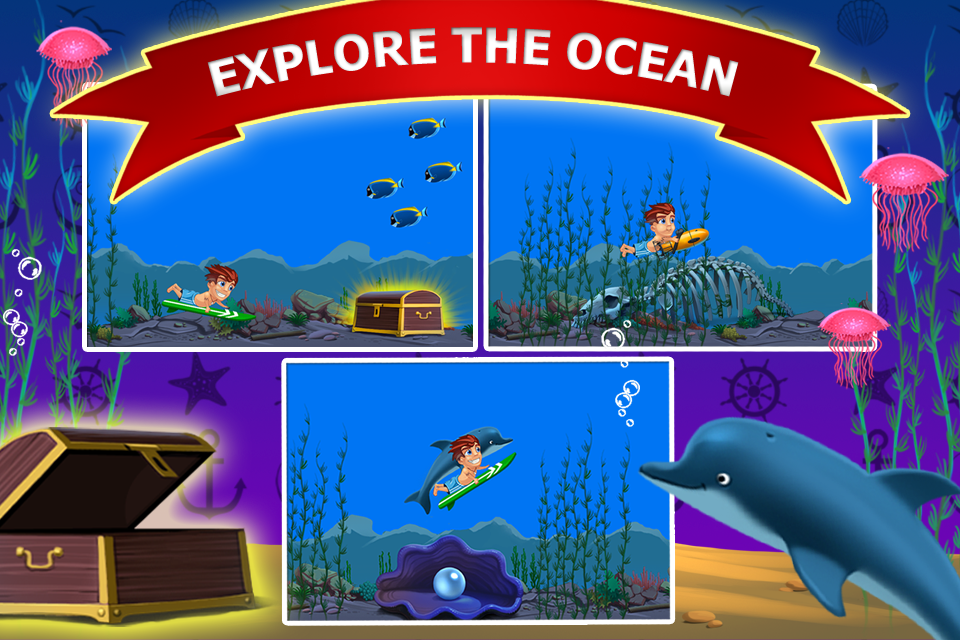 Banzai Surfer sends you on a speedy surf trip over tremendous waves: Escape from voracious sharks, find sunken treasures and ride on dolphins while you master wave by wave in this breathtaking mix of endless runner and surfing simulation!