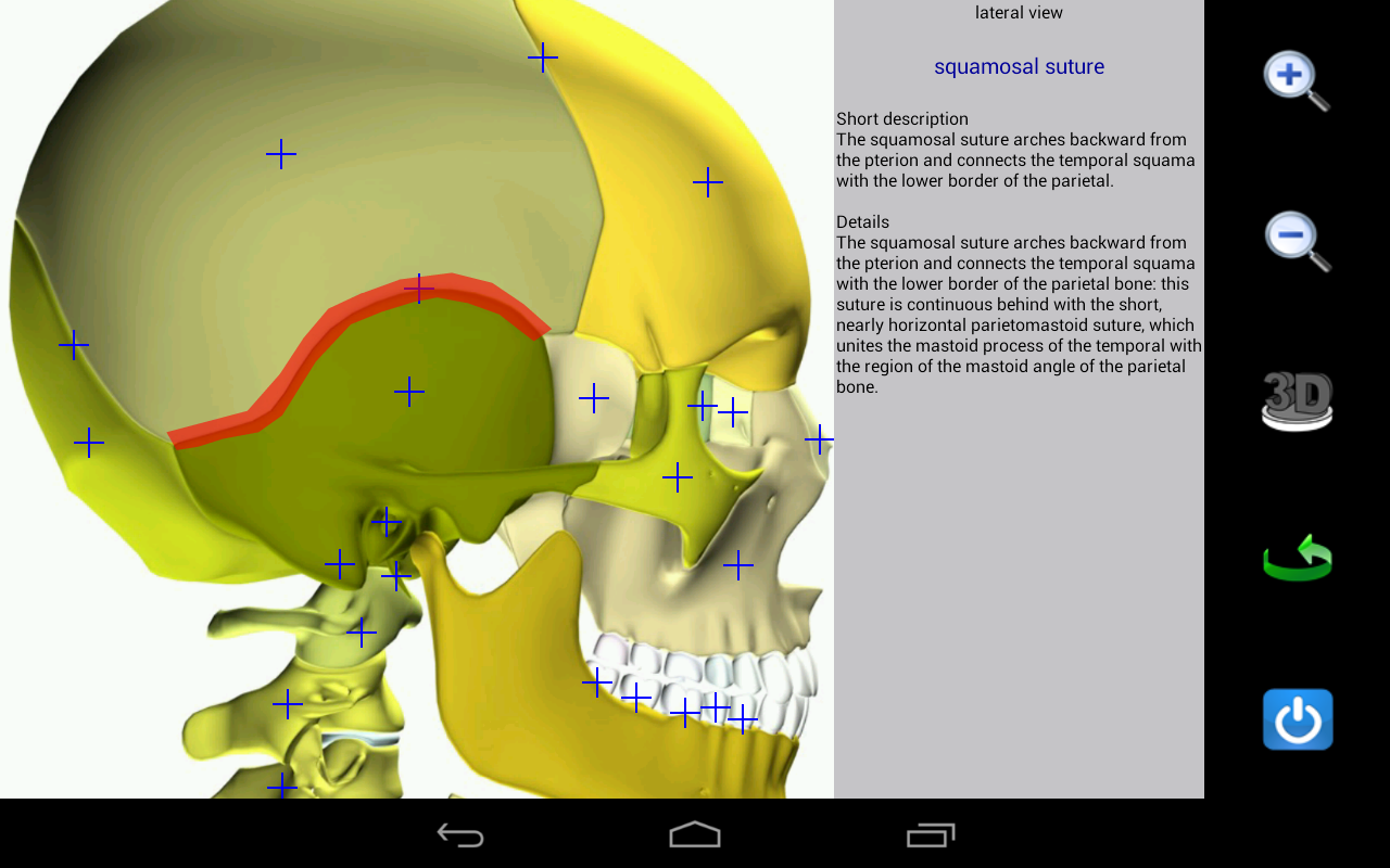 Visual Anatomy is an interactive reference, and education tool. The full version contains more than 200 high-resolution images and more than 850 feature points which can be interactively selected. Each feature has its own label and short description. The app also has search function which can be used as searching the labels of all feature points. In additional, 6 quizzes with 150 multi-choice questions also are included.